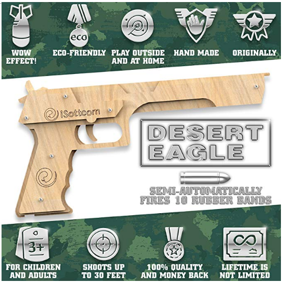 - NON RISK DEAL – take your family out and spend time together, playing with our wooden toy gun Desert Eagle and leave your stress behind! We guarantee satisfaction, 2 years warranty or refund. Be sure you found a Best Gift! Buy your Rubber Band Gun now!