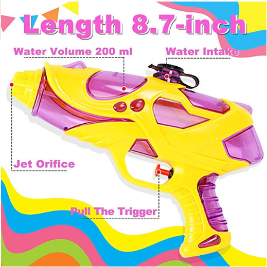 • 2 入水槍:2 入水槍,藍色和紫色,長度 – 8.7 吋,高度 – 6.7 吋,適合兒童玩耍。 高容量,可容納 200 毫升水。 新穎美麗的設計,輕量,舒適的手柄,不會漏水,易於使用和攜帶。 用這些水槍度過一個涼爽的夏天!